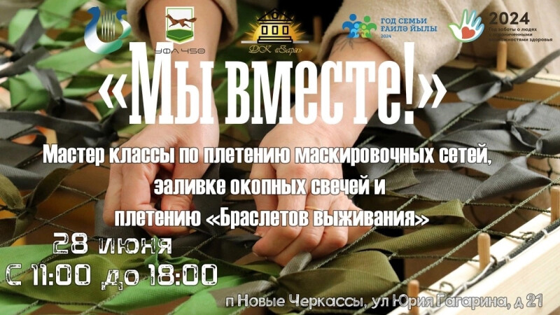 Мероприятие пройдет в формате мастер-класса по плетению маскировочных сетей, «Браслета выживания» и заливке окопных свечей. Вся изготовленная продукция будет передана участникам СВО.