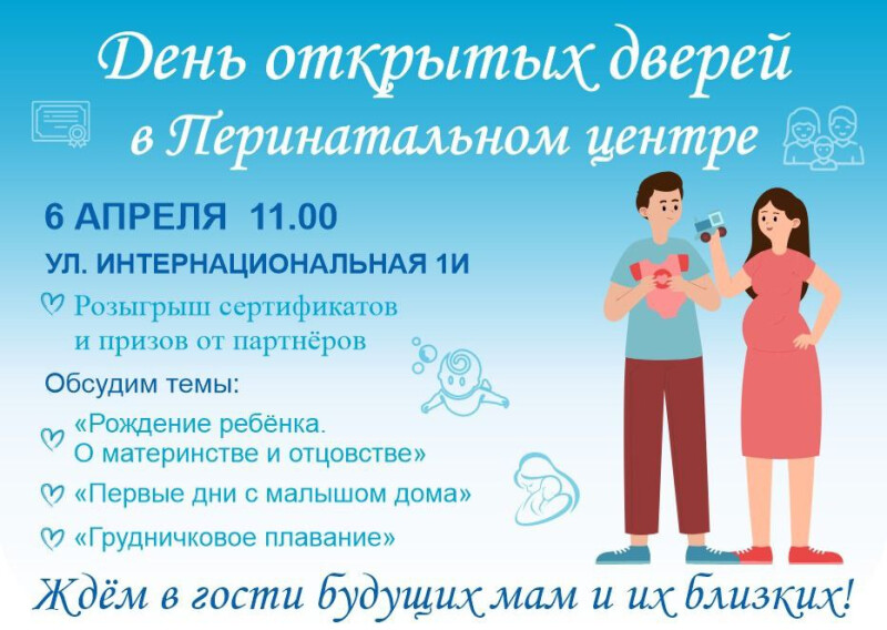 6 апреля рязанский перинатальный центр приглашает будущих мам на День открытых дверей. Семейные психологи расскажут о партнёрских родах, секретах материнства и отцовства. Также для посетителей пройдет презентация проекта «Навстречу семье».